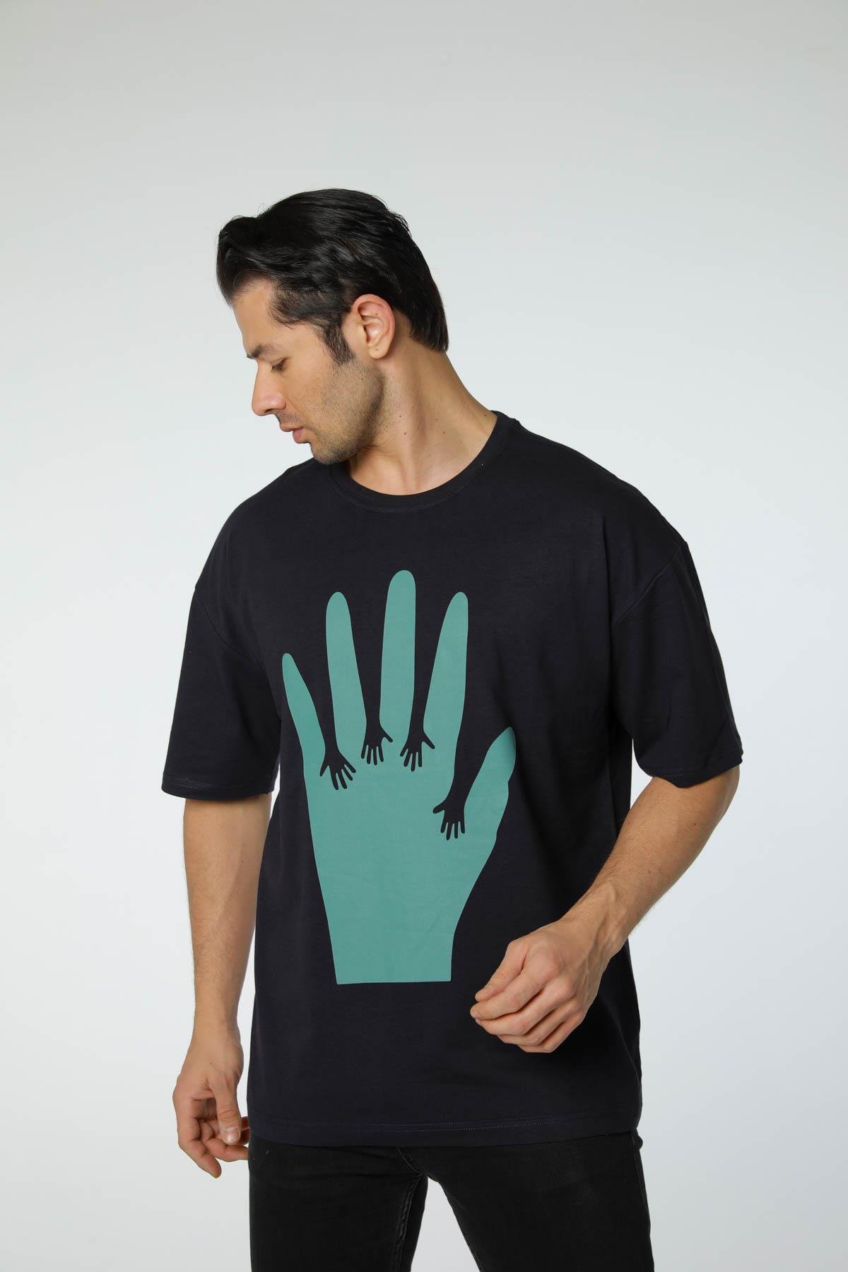 Baskılı Oversize Bisiklet Yaka - T-Shirt (24YB24135)
